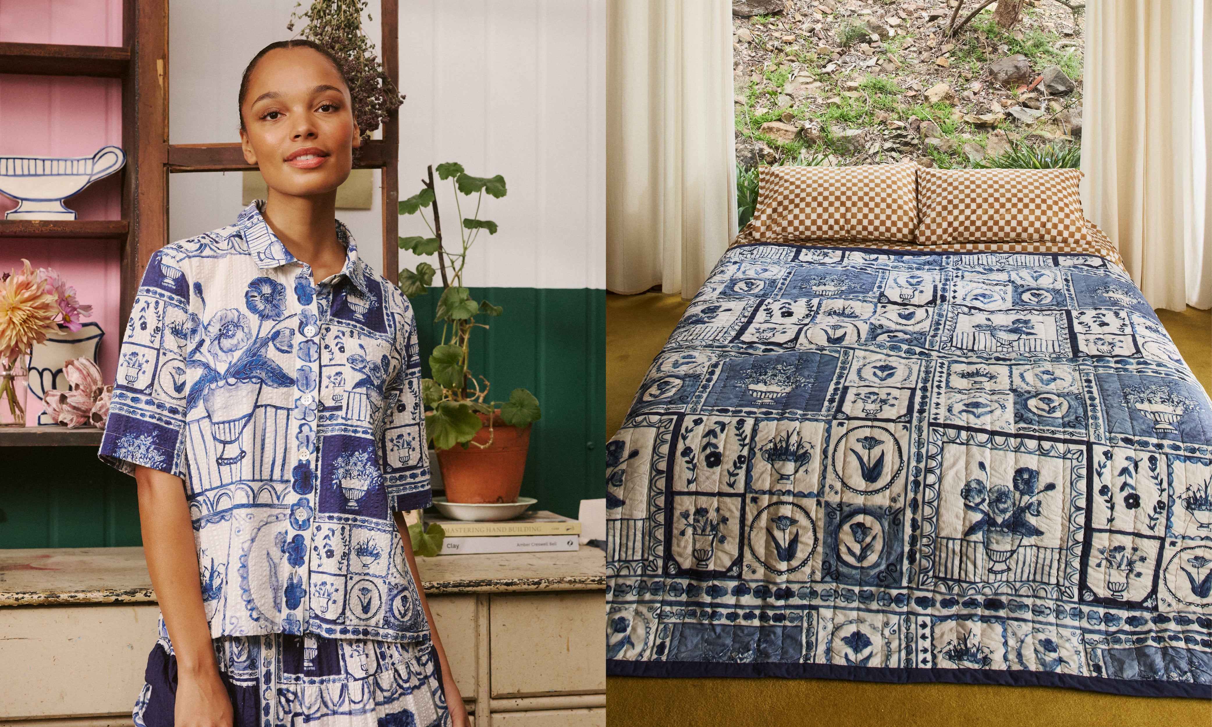 Remnant Kantha Quilt - Spring Check