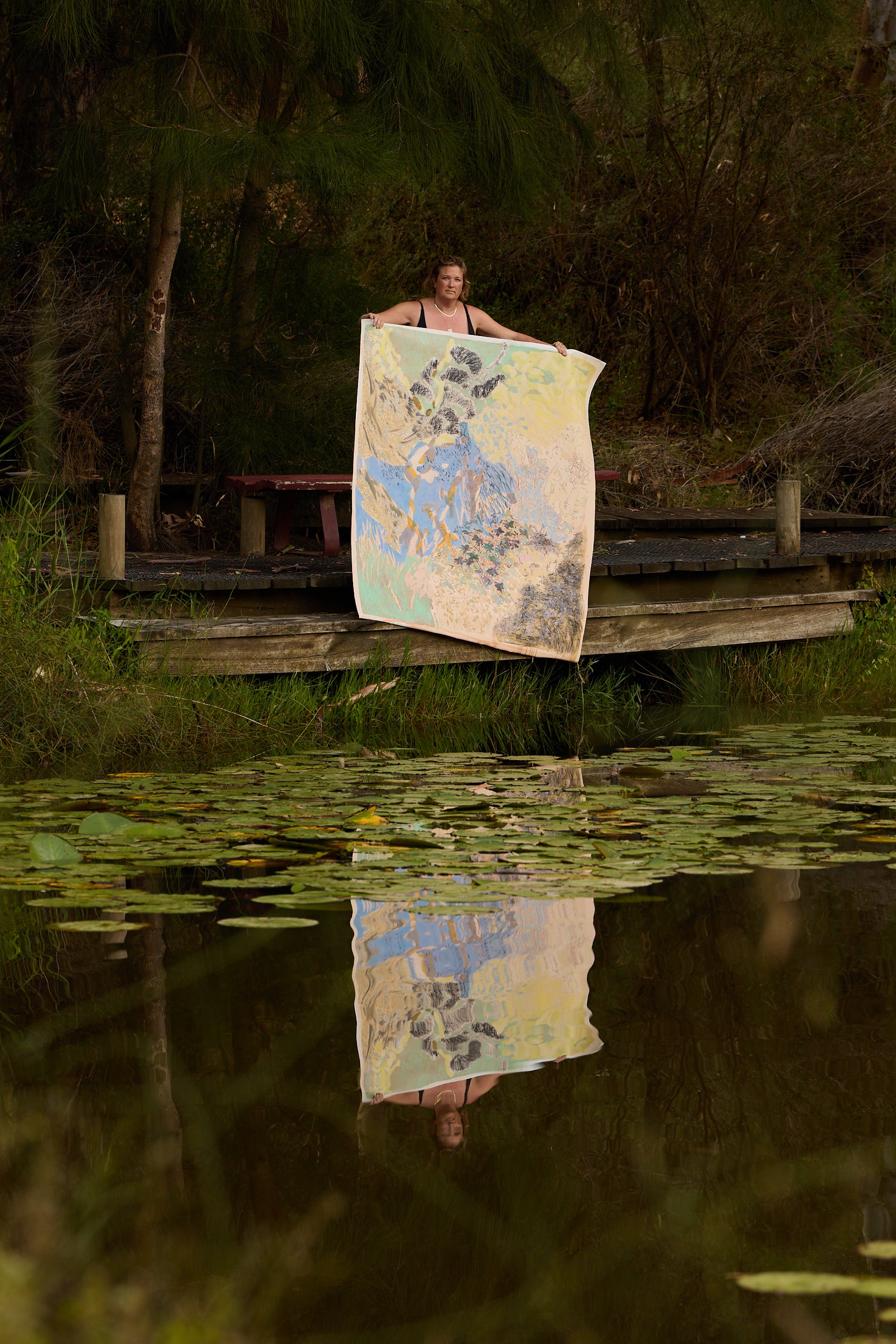 Being a textile designer by trade, working with Nancybird has felt like a full circle moment. I have always loved making a product that people can enjoy and have a connection with. While my wonderful collectors are choosing my work to adorn their walls, I love working on fashion and homewares products. These are pieces that someone makes a conscious choice to interact with, often on a daily basis. I too when decorating my home, and when buying clothing (unless it’s studio clothes ha!) only want to feel good in them or to have objects in my home that sparks joy.