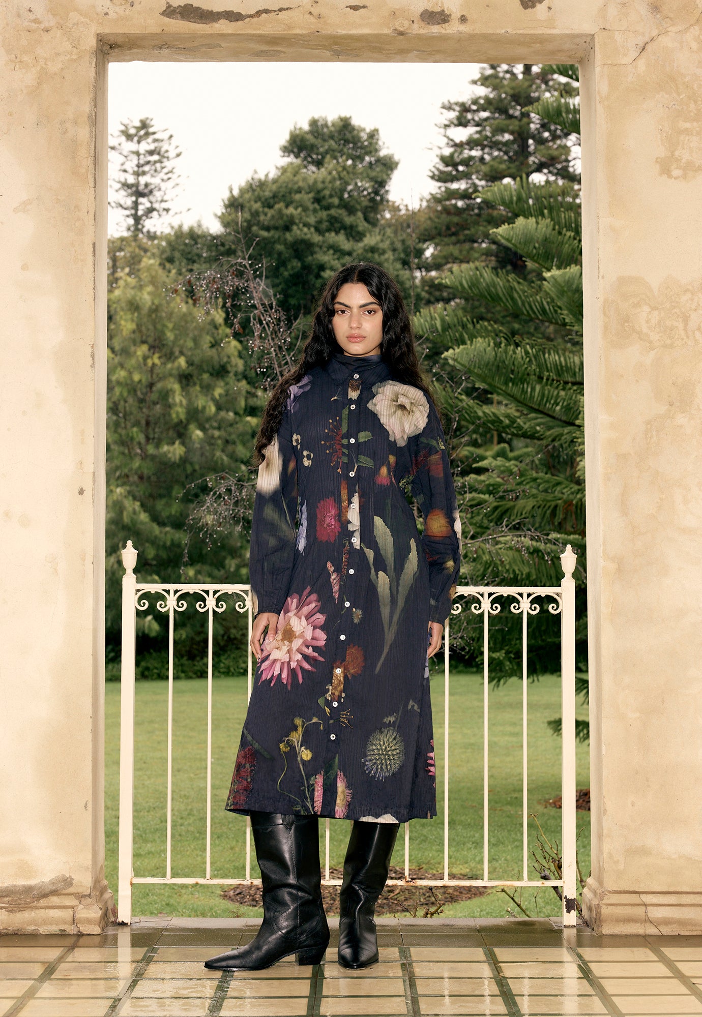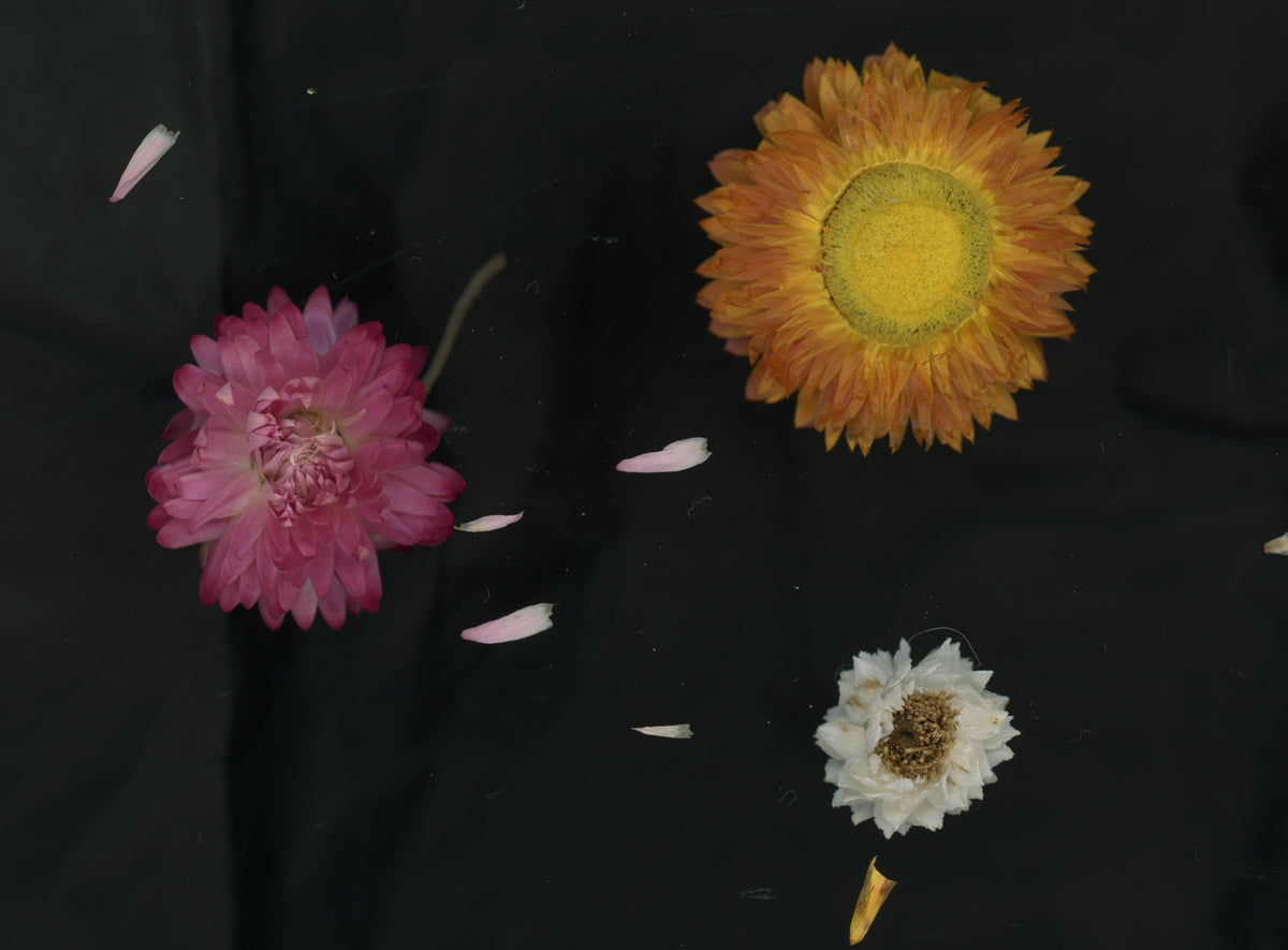 Our latest collection, Floratone, invites you into a dreamy world where florals emerge from darkness, capturing the beautifully imperfect forms of both native and exotic gardens. Our founder Emily's innovative approach transforms delicate flowers – from plumbago and paper daisies to dahlias – into ethereal prints through a unique scanning process. By carefully arranging flowers against black fabric and capturing their essence through high-resolution scans, Emily has created a collection that blurs the lines between botanical documentation and artistic expression, revealing the subtle beauty of imperfection and natural forms.