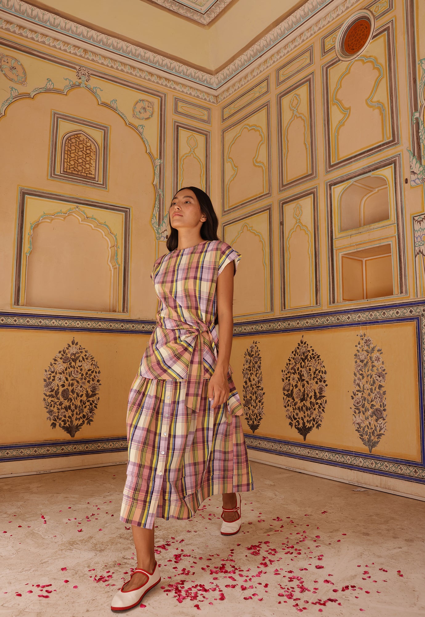 On a recent trip to Jaipur, India, Emily and Sarah were warmly welcomed back to the Kala Swaraj Foundation, a non-profit organisation dedicated to supporting handloom artisans. Our longstanding collaboration with Kala Swaraj has been instrumental in creating a collection of beautifully handcrafted garments and supporting this wonderful community of weavers.