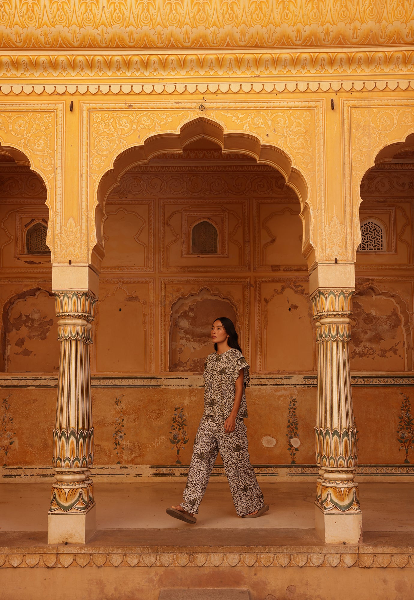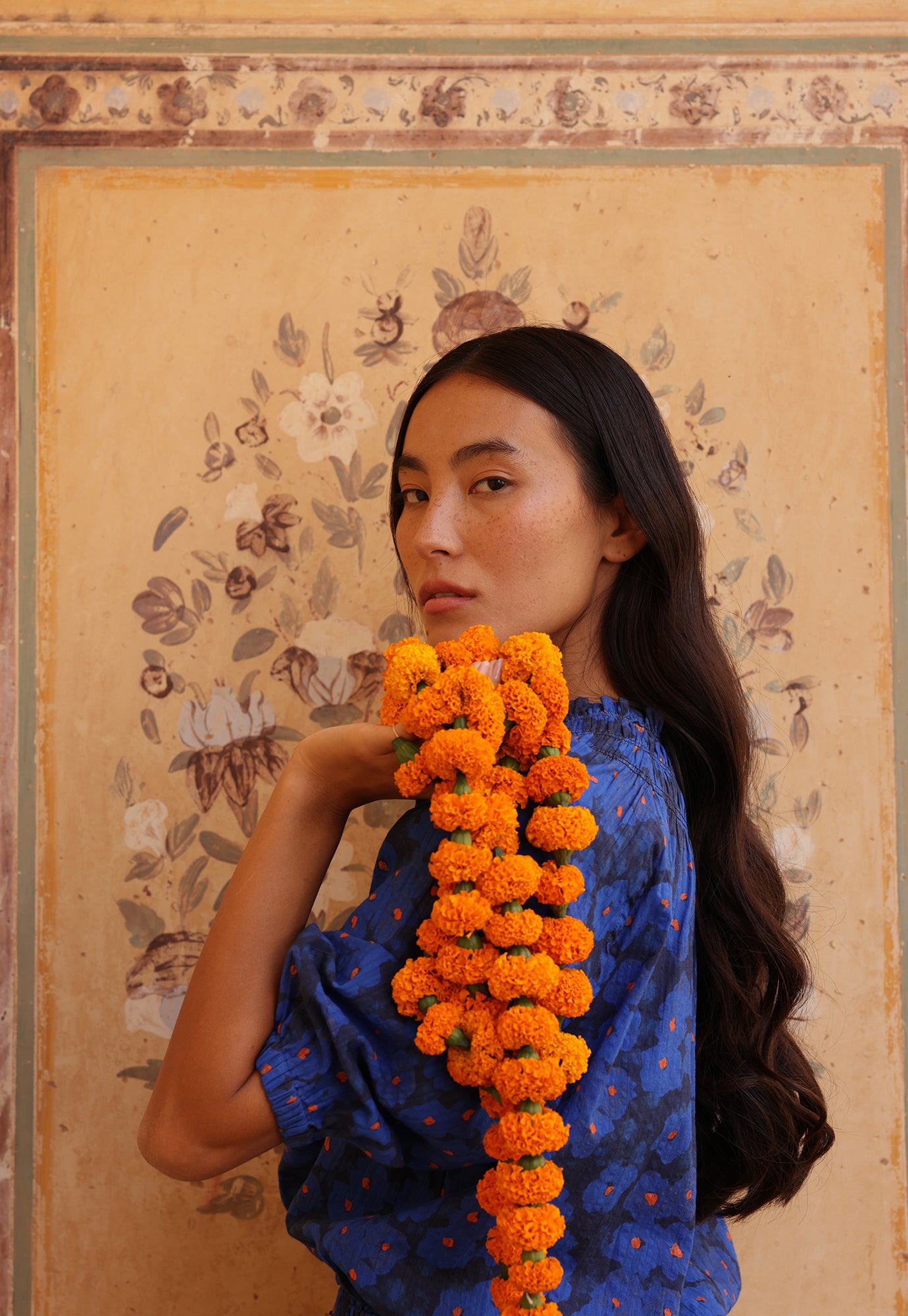 "I first visited Jaipur in 2017 to see our makers, Mehera Shaw, who are based there. It’s a place that has always stayed with me. The dusty pink hues of the old city, the bright orange marigolds that adorn nearly everything, and the hand-painted motifs on the buildings—it’s truly an artist’s dream!