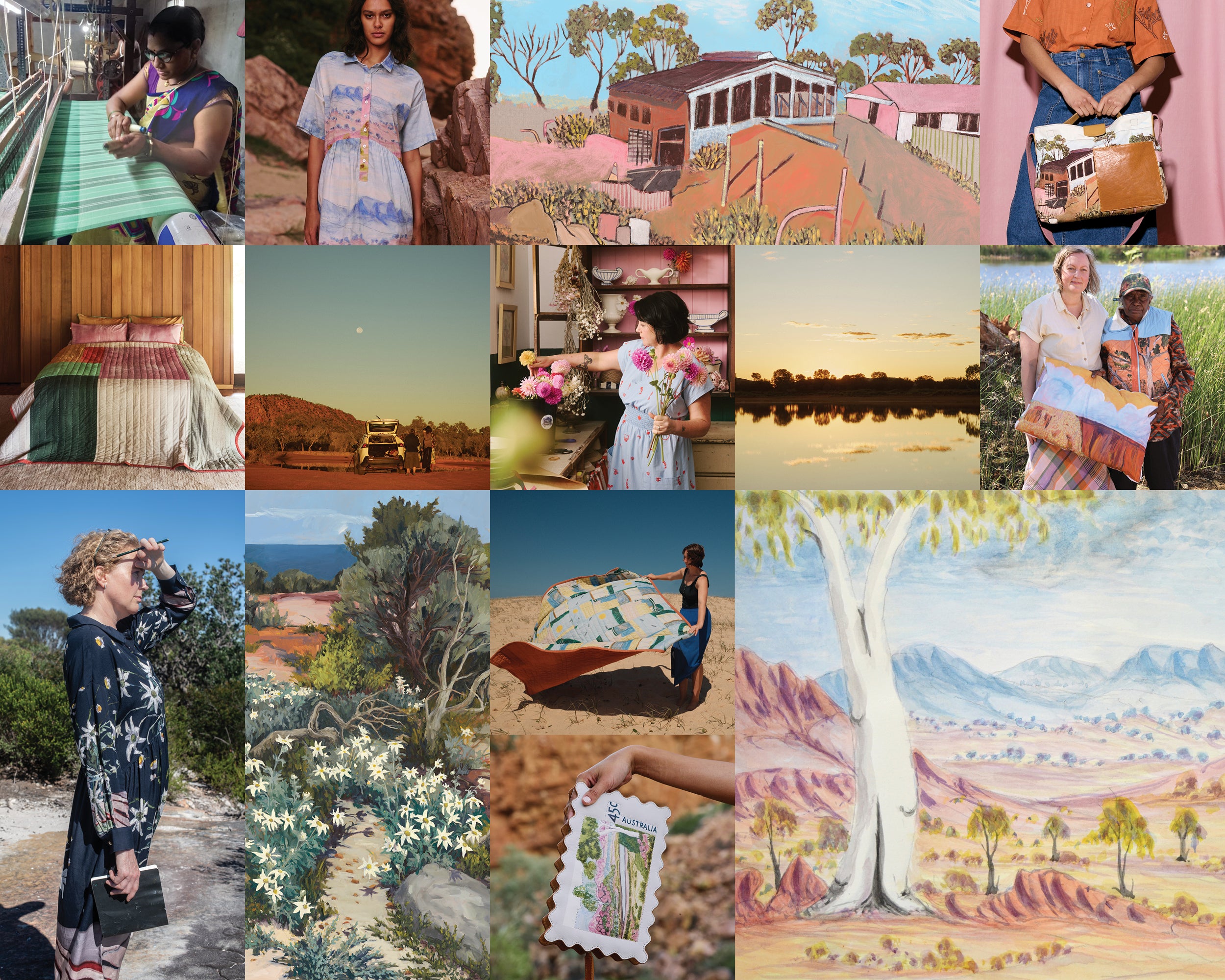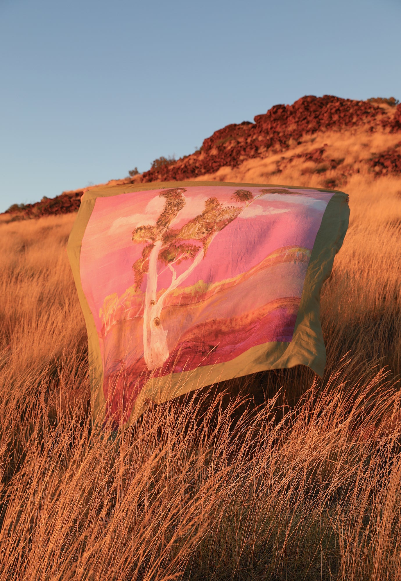 Our team travelled to Mparntwe, spending time at Iltja Ntjarra Art Centre, we were fortunate to meet the very talented Kumantjai M. Wheeler, photographing his paintings and later visiting Simpson’s Gap with his family. It was an honour to share time together and to help bring these powerful works into much-loved pieces that carry stories into summer and beyond.