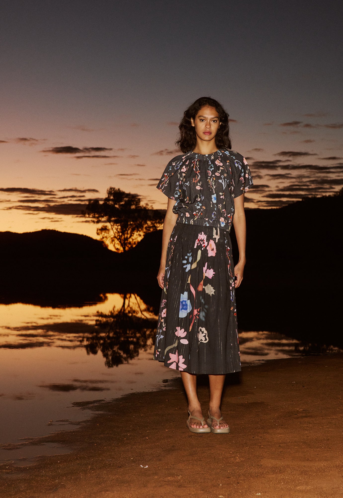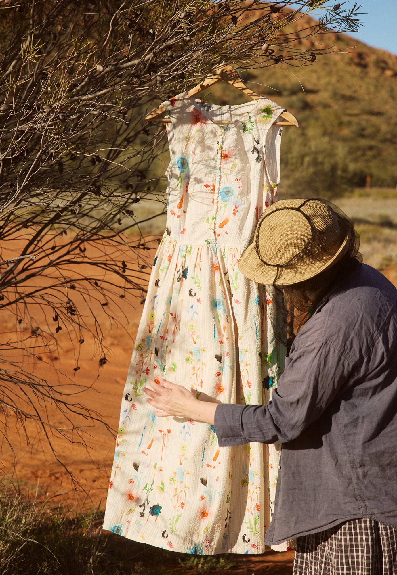 We planned to shoot in Alice Springs for our final collaboration for SS25/26 (more on that in a few weeks!) and we thought it would be a perfect place to also shoot Iridescence – this collection is about the colour and light found in the watercolour artworks, and that soft, clear light felt so fitting for a sunrise shoot.