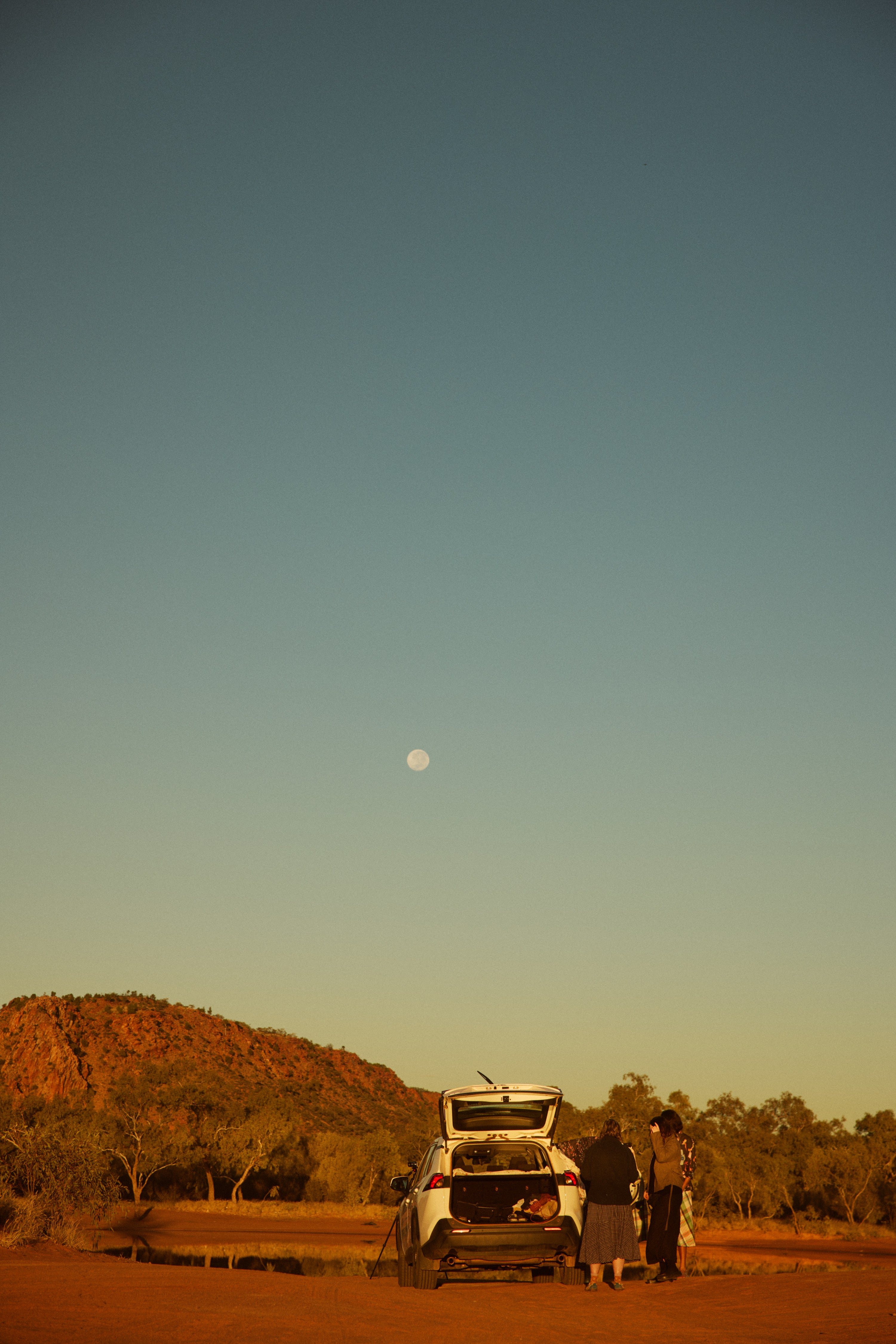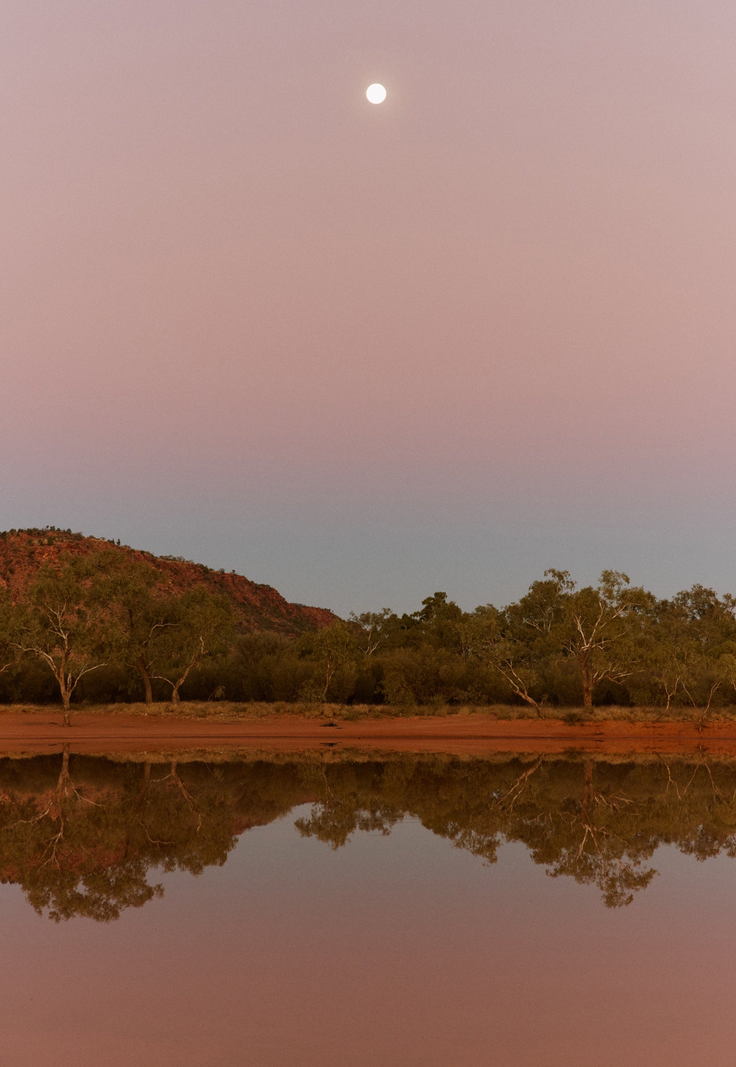 Sarah and I did a reccy for shoot locations the day before the rest of the team arrived. It happened to be a full moon, and in the evening as we were heading back from Clay Pans, the full moon was rising over the MacDonnell Ranges – it was so stunning, and the colours were so warm and soft. It is an incredibly beautiful place!
