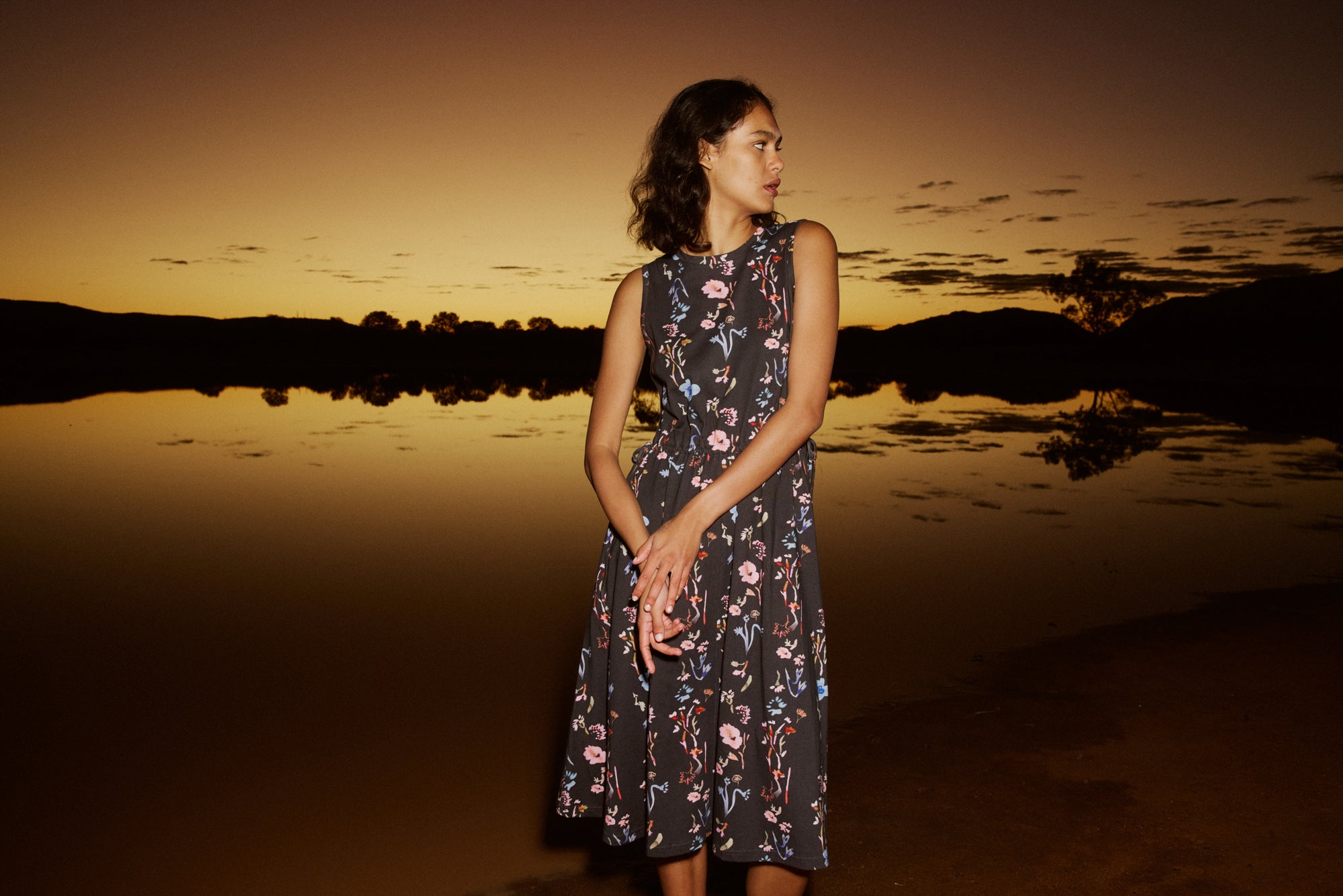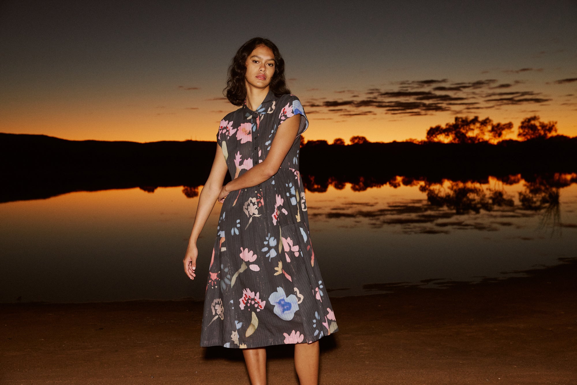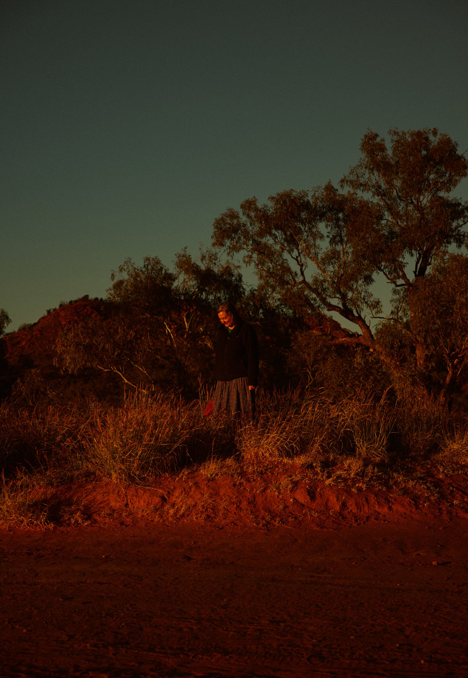 We shot the collection at Clay Pans, just outside of the town, which are shallow, ephemeral pools that catch the light and reflections of the surrounding MacDonnell Ranges.