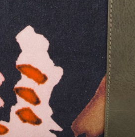 GOTS certified organic printed cotton canvas body, vegetable tanned leather short straps, woven cotton long strap, top magnetic closure, inside open and zip pocket, GOTS certified organic printed cotton lining.