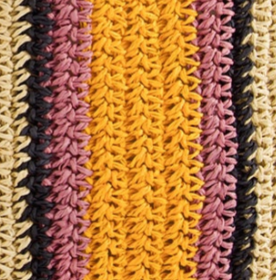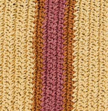 A stunning artisan made carryall tote with hand crocheted raffia body in a stripe design. Short and long handles provide multiple ways of wearing.